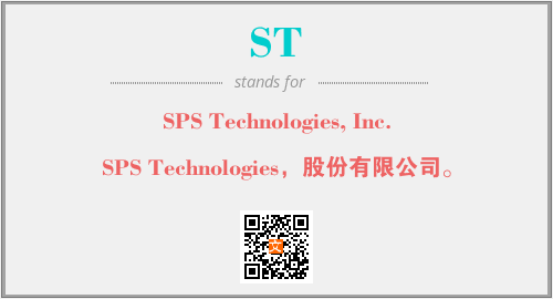 上述内容是“SPS Technologies, Inc.”作为“ST”的缩写,解释为“SPS Technologies,股份有限公司。”时的信息,以及英文缩略词ST所代表的英文单词,其对应的中文拼音、详细解释以及在英文中的流行度和相关分类、应用领域及应用示例等。
