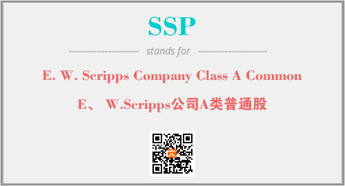 英文缩略词“SSP”经常作为“E. W. Scripps Company Class A Common”的英文缩写来使用,中文表示:“E、 W.Scripps公司A类普通股”。本文将详细介绍英文缩写词SSP所代表英文单词,其对应的中文拼音、详细解释以及在英语中的流行度。此外,还有关于缩略词SSP的分类、应用领域及相关应用示例等。