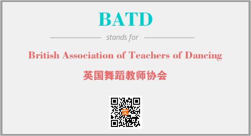 英文缩略词“BATD”经常作为“British Association of Teachers of Dancing”的英文缩写来使用,中文表示:“英国舞蹈教师协会”。本文将详细介绍英文缩写词BATD所代表英文单词,其对应的中文拼音、详细解释以及在英语中的流行度。此外,还有关于缩略词BATD的分类、应用领域及相关应用示例等。