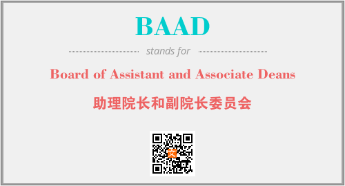 英文缩略词“BAAD”经常作为“Board of Assistant and Associate Deans”的英文缩写来使用,中文表示:“助理院长和副院长委员会”。本文将详细介绍英文缩写词BAAD所代表英文单词,其对应的中文拼音、详细解释以及在英语中的流行度。此外,还有关于缩略词BAAD的分类、应用领域及相关应用示例等。