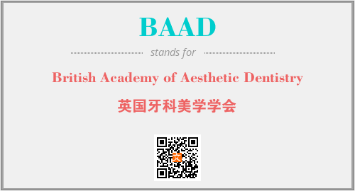 上述内容是“British Academy of Aesthetic Dentistry”作为“BAAD”的缩写,解释为“英国牙科美学学会”时的信息,以及英文缩略词BAAD所代表的英文单词,其对应的中文拼音、详细解释以及在英文中的流行度和相关分类、应用领域及应用示例等。