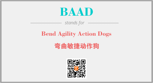 上述内容是“Bend Agility Action Dogs”作为“BAAD”的缩写,解释为“弯曲敏捷动作狗”时的信息,以及英文缩略词BAAD所代表的英文单词,其对应的中文拼音、详细解释以及在英文中的流行度和相关分类、应用领域及应用示例等。