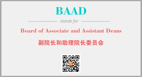 英文缩略词“BAAD”经常作为“Board of Associate and Assistant Deans”的英文缩写来使用,中文表示:“副院长和助理院长委员会”。本文将详细介绍英文缩写词BAAD所代表英文单词,其对应的中文拼音、详细解释以及在英语中的流行度。此外,还有关于缩略词BAAD的分类、应用领域及相关应用示例等。