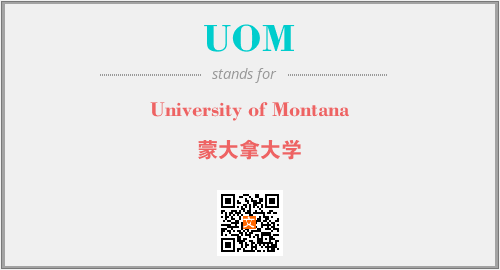 上述内容是“University of Montana”作为“UOM”的缩写,解释为“蒙大拿大学”时的信息,以及英文缩略词UOM所代表的英文单词,其对应的中文拼音、详细解释以及在英文中的流行度和相关分类、应用领域及应用示例等。