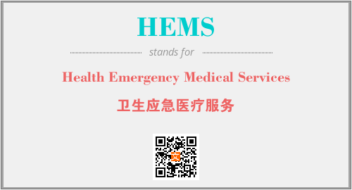 上述内容是“Health Emergency Medical Services”作为“HEMS”的缩写,解释为“卫生应急医疗服务”时的信息,以及英文缩略词HEMS所代表的英文单词,其对应的中文拼音、详细解释以及在英文中的流行度和相关分类、应用领域及应用示例等。