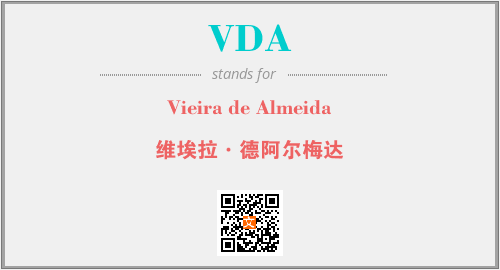 以上为Vieira de Almeida英文缩略词VDA的中文解释,以及该英文缩写在英语的流行度、分类和应用领域方面的信息。