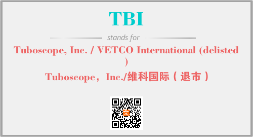 上述内容是“Tuboscope, Inc. / VETCO International (delisted)”作为“TBI”的缩写,解释为“Tuboscope,Inc./维科国际(退市)”时的信息,以及英文缩略词TBI所代表的英文单词,其对应的中文拼音、详细解释以及在英文中的流行度和相关分类、应用领域及应用示例等。