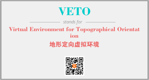 上述内容是“Virtual Environment for Topographical Orientation”作为“VETO”的缩写,解释为“地形定向虚拟环境”时的信息,以及英文缩略词VETO所代表的英文单词,其对应的中文拼音、详细解释以及在英文中的流行度和相关分类、应用领域及应用示例等。