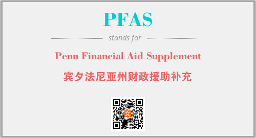 上述内容是“Penn Financial Aid Supplement”作为“PFAS”的缩写,解释为“宾夕法尼亚州财政援助补充”时的信息,以及英文缩略词PFAS所代表的英文单词,其对应的中文拼音、详细解释以及在英文中的流行度和相关分类、应用领域及应用示例等。