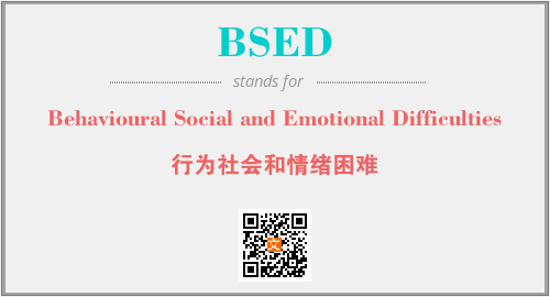 上述内容是“Behavioural Social and Emotional Difficulties”作为“BSED”的缩写,解释为“行为社会和情绪困难”时的信息,以及英文缩略词BSED所代表的英文单词,其对应的中文拼音、详细解释以及在英文中的流行度和相关分类、应用领域及应用示例等。