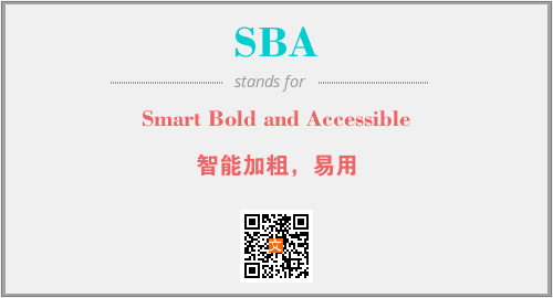 英文缩略词“SBA”经常作为“Smart Bold and Accessible”的英文缩写来使用,中文表示:“智能加粗,易用”。本文将详细介绍英文缩写词SBA所代表英文单词,其对应的中文拼音、详细解释以及在英语中的流行度。此外,还有关于缩略词SBA的分类、应用领域及相关应用示例等。