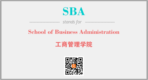 英文缩略词“SBA”经常作为“School of Business Administration”的英文缩写来使用,中文表示:“工商管理学院”。本文将详细介绍英文缩写词SBA所代表英文单词,其对应的中文拼音、详细解释以及在英语中的流行度。此外,还有关于缩略词SBA的分类、应用领域及相关应用示例等。