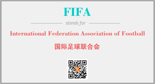 英文缩略词“FIFA”经常作为“International Federation Association of Football”的英文缩写来使用,中文表示:“国际足球联合会”。本文将详细介绍英文缩写词FIFA所代表英文单词,其对应的中文拼音、详细解释以及在英语中的流行度。此外,还有关于缩略词FIFA的分类、应用领域及相关应用示例等。