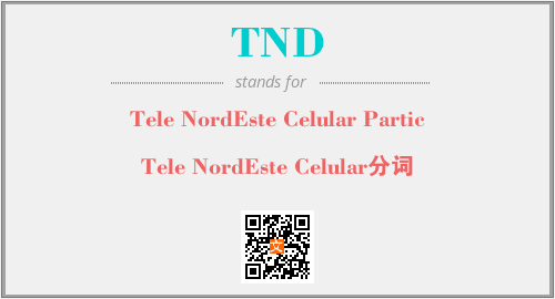 英文缩略词“TND”经常作为“Tele NordEste Celular Partic”的英文缩写来使用,中文表示:“Tele NordEste Celular分词”。本文将详细介绍英文缩写词TND所代表英文单词,其对应的中文拼音、详细解释以及在英语中的流行度。此外,还有关于缩略词TND的分类、应用领域及相关应用示例等。