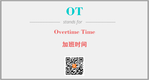 英文缩略词“OT”经常作为“Overtime Time”的英文缩写来使用,中文表示:“加班时间”。本文将详细介绍英文缩写词OT所代表英文单词,其对应的中文拼音、详细解释以及在英语中的流行度。此外,还有关于缩略词OT的分类、应用领域及相关应用示例等。