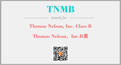 上述内容是“Thomas Nelson, Inc. Class B”作为“TNMB”的缩写,解释为“Thomas Nelson,Inc.B类”时的信息,以及英文缩略词TNMB所代表的英文单词,其对应的中文拼音、详细解释以及在英文中的流行度和相关分类、应用领域及应用示例等。