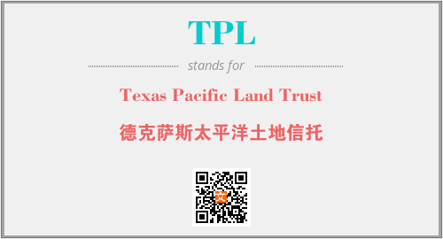 上述内容是“Texas Pacific Land Trust”作为“TPL”的缩写,解释为“德克萨斯太平洋土地信托”时的信息,以及英文缩略词TPL所代表的英文单词,其对应的中文拼音、详细解释以及在英文中的流行度和相关分类、应用领域及应用示例等。
