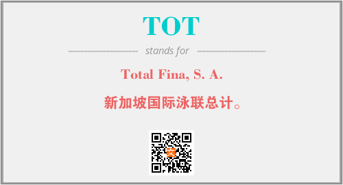 上述内容是“Total Fina, S. A.”作为“TOT”的缩写,解释为“新加坡国际泳联总计。”时的信息,以及英文缩略词TOT所代表的英文单词,其对应的中文拼音、详细解释以及在英文中的流行度和相关分类、应用领域及应用示例等。