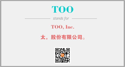 上述内容是“TOO, Inc.”作为“TOO”的缩写,解释为“太,股份有限公司。”时的信息,以及英文缩略词TOO所代表的英文单词,其对应的中文拼音、详细解释以及在英文中的流行度和相关分类、应用领域及应用示例等。