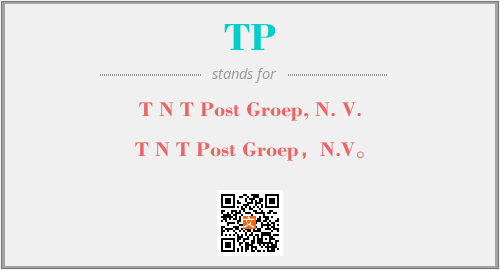 英文缩略词“TP”经常作为“T N T Post Groep, N. V.”的英文缩写来使用,中文表示:“T N T Post Groep,N.V。”。本文将详细介绍英文缩写词TP所代表英文单词,其对应的中文拼音、详细解释以及在英语中的流行度。此外,还有关于缩略词TP的分类、应用领域及相关应用示例等。