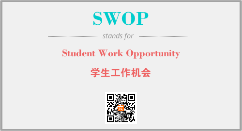 以上为Student Work Opportunity英文缩略词SWOP的中文解释,以及该英文缩写在英语的流行度、分类和应用领域方面的信息。