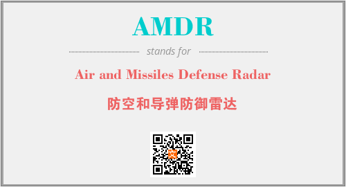 上述内容是“Air and Missiles Defense Radar”作为“AMDR”的缩写,解释为“防空和导弹防御雷达”时的信息,以及英文缩略词AMDR所代表的英文单词,其对应的中文拼音、详细解释以及在英文中的流行度和相关分类、应用领域及应用示例等。