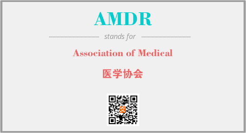 上述内容是“Association of Medical”作为“AMDR”的缩写,解释为“医学协会”时的信息,以及英文缩略词AMDR所代表的英文单词,其对应的中文拼音、详细解释以及在英文中的流行度和相关分类、应用领域及应用示例等。