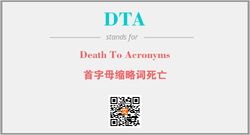 以上为Death To Acronyms英文缩略词DTA的中文解释,以及该英文缩写在英语的流行度、分类和应用领域方面的信息。