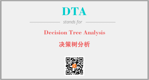 上述内容是“Decision Tree Analysis”作为“DTA”的缩写,解释为“决策树分析”时的信息,以及英文缩略词DTA所代表的英文单词,其对应的中文拼音、详细解释以及在英文中的流行度和相关分类、应用领域及应用示例等。