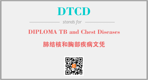 上述内容是“DIPLOMA TB and Chest Diseases”作为“DTCD”的缩写,解释为“肺结核和胸部疾病文凭”时的信息,以及英文缩略词DTCD所代表的英文单词,其对应的中文拼音、详细解释以及在英文中的流行度和相关分类、应用领域及应用示例等。