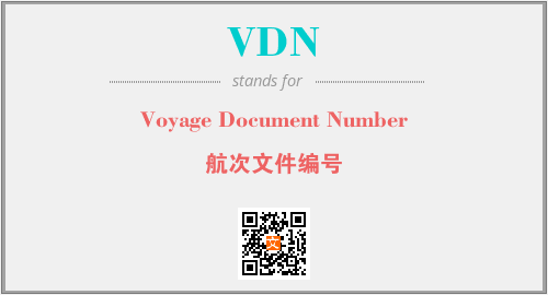英文缩略词“VDN”经常作为“Voyage Document Number”的英文缩写来使用,中文表示:“航次文件编号”。本文将详细介绍英文缩写词VDN所代表英文单词,其对应的中文拼音、详细解释以及在英语中的流行度。此外,还有关于缩略词VDN的分类、应用领域及相关应用示例等。