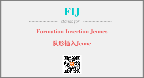 上述内容是“Formation Insertion Jeunes”作为“FIJ”的缩写,解释为“队形插入Jeune”时的信息,以及英文缩略词FIJ所代表的英文单词,其对应的中文拼音、详细解释以及在英文中的流行度和相关分类、应用领域及应用示例等。