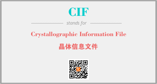 英文缩略词“CIF”经常作为“Crystallographic Information File”的英文缩写来使用,中文表示:“晶体信息文件”。本文将详细介绍英文缩写词CIF所代表英文单词,其对应的中文拼音、详细解释以及在英语中的流行度。此外,还有关于缩略词CIF的分类、应用领域及相关应用示例等。