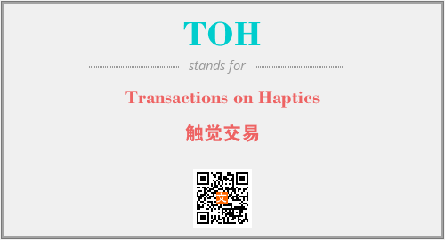 英文缩略词“TOH”经常作为“Transactions on Haptics”的英文缩写来使用,中文表示:“触觉交易”。本文将详细介绍英文缩写词TOH所代表英文单词,其对应的中文拼音、详细解释以及在英语中的流行度。此外,还有关于缩略词TOH的分类、应用领域及相关应用示例等。