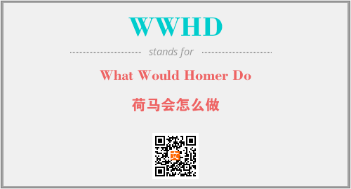 上述内容是“What Would Homer Do”作为“WWHD”的缩写,解释为“荷马会怎么做”时的信息,以及英文缩略词WWHD所代表的英文单词,其对应的中文拼音、详细解释以及在英文中的流行度和相关分类、应用领域及应用示例等。