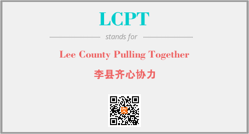 以上为Lee County Pulling Together英文缩略词LCPT的中文解释,以及该英文缩写在英语的流行度、分类和应用领域方面的信息。