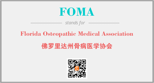 上述内容是“Florida Osteopathic Medical Association”作为“FOMA”的缩写,解释为“佛罗里达州骨病医学协会”时的信息,以及英文缩略词FOMA所代表的英文单词,其对应的中文拼音、详细解释以及在英文中的流行度和相关分类、应用领域及应用示例等。