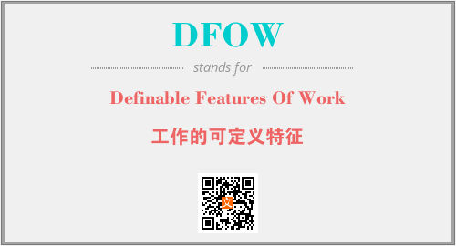 上述内容是“Definable Features Of Work”作为“DFOW”的缩写,解释为“工作的可定义特征”时的信息,以及英文缩略词DFOW所代表的英文单词,其对应的中文拼音、详细解释以及在英文中的流行度和相关分类、应用领域及应用示例等。