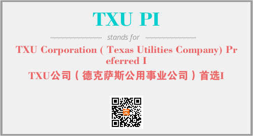 上述内容是“TXU Corporation ( Texas Utilities Company) Preferred I”作为“TXU PI”的缩写,解释为“TXU公司(德克萨斯公用事业公司)首选I”时的信息,以及英文缩略词TXU PI所代表的英文单词,其对应的中文拼音、详细解释以及在英文中的流行度和相关分类、应用领域及应用示例等。