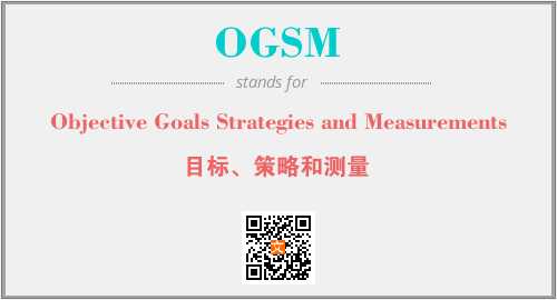 上述内容是“Objective Goals Strategies and Measurements”作为“OGSM”的缩写,解释为“目标、策略和测量”时的信息,以及英文缩略词OGSM所代表的英文单词,其对应的中文拼音、详细解释以及在英文中的流行度和相关分类、应用领域及应用示例等。