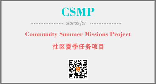 以上为Community Summer Missions Project英文缩略词CSMP的中文解释,以及该英文缩写在英语的流行度、分类和应用领域方面的信息。