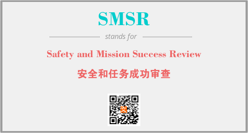 上述内容是“Safety and Mission Success Review”作为“SMSR”的缩写,解释为“安全和任务成功审查”时的信息,以及英文缩略词SMSR所代表的英文单词,其对应的中文拼音、详细解释以及在英文中的流行度和相关分类、应用领域及应用示例等。