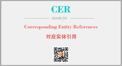 上述内容是“Corresponding Entity References”作为“CER”的缩写,解释为“对应实体引用”时的信息,以及英文缩略词CER所代表的英文单词,其对应的中文拼音、详细解释以及在英文中的流行度和相关分类、应用领域及应用示例等。