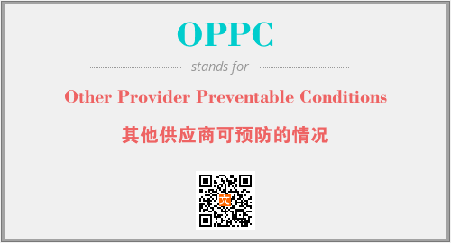 上述内容是“Other Provider Preventable Conditions”作为“OPPC”的缩写,解释为“其他供应商可预防的情况”时的信息,以及英文缩略词OPPC所代表的英文单词,其对应的中文拼音、详细解释以及在英文中的流行度和相关分类、应用领域及应用示例等。