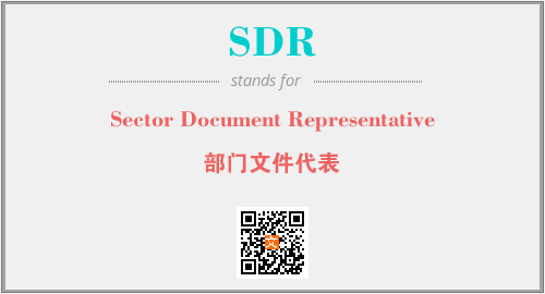 英文缩略词“SDR”经常作为“Sector Document Representative”的英文缩写来使用,中文表示:“部门文件代表”。本文将详细介绍英文缩写词SDR所代表英文单词,其对应的中文拼音、详细解释以及在英语中的流行度。此外,还有关于缩略词SDR的分类、应用领域及相关应用示例等。