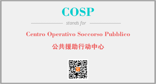 上述内容是“Centro Operativo Soccorso Pubblico”作为“COSP”的缩写,解释为“公共援助行动中心”时的信息,以及英文缩略词COSP所代表的英文单词,其对应的中文拼音、详细解释以及在英文中的流行度和相关分类、应用领域及应用示例等。