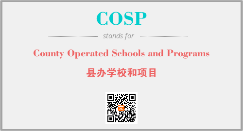 上述内容是“County Operated Schools and Programs”作为“COSP”的缩写,解释为“县办学校和项目”时的信息,以及英文缩略词COSP所代表的英文单词,其对应的中文拼音、详细解释以及在英文中的流行度和相关分类、应用领域及应用示例等。