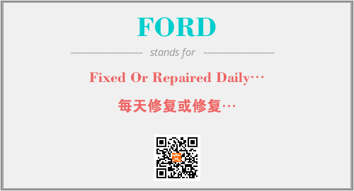 上述内容是“Fixed Or Repaired Daily…”作为“FORD”的缩写,解释为“每天修复或修复…”时的信息,以及英文缩略词FORD所代表的英文单词,其对应的中文拼音、详细解释以及在英文中的流行度和相关分类、应用领域及应用示例等。