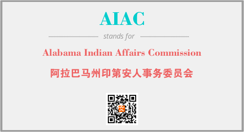 上述内容是“Alabama Indian Affairs Commission”作为“AIAC”的缩写,解释为“阿拉巴马州印第安人事务委员会”时的信息,以及英文缩略词AIAC所代表的英文单词,其对应的中文拼音、详细解释以及在英文中的流行度和相关分类、应用领域及应用示例等。