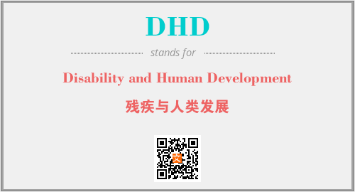 上述内容是“Disability and Human Development”作为“DHD”的缩写,解释为“残疾与人类发展”时的信息,以及英文缩略词DHD所代表的英文单词,其对应的中文拼音、详细解释以及在英文中的流行度和相关分类、应用领域及应用示例等。